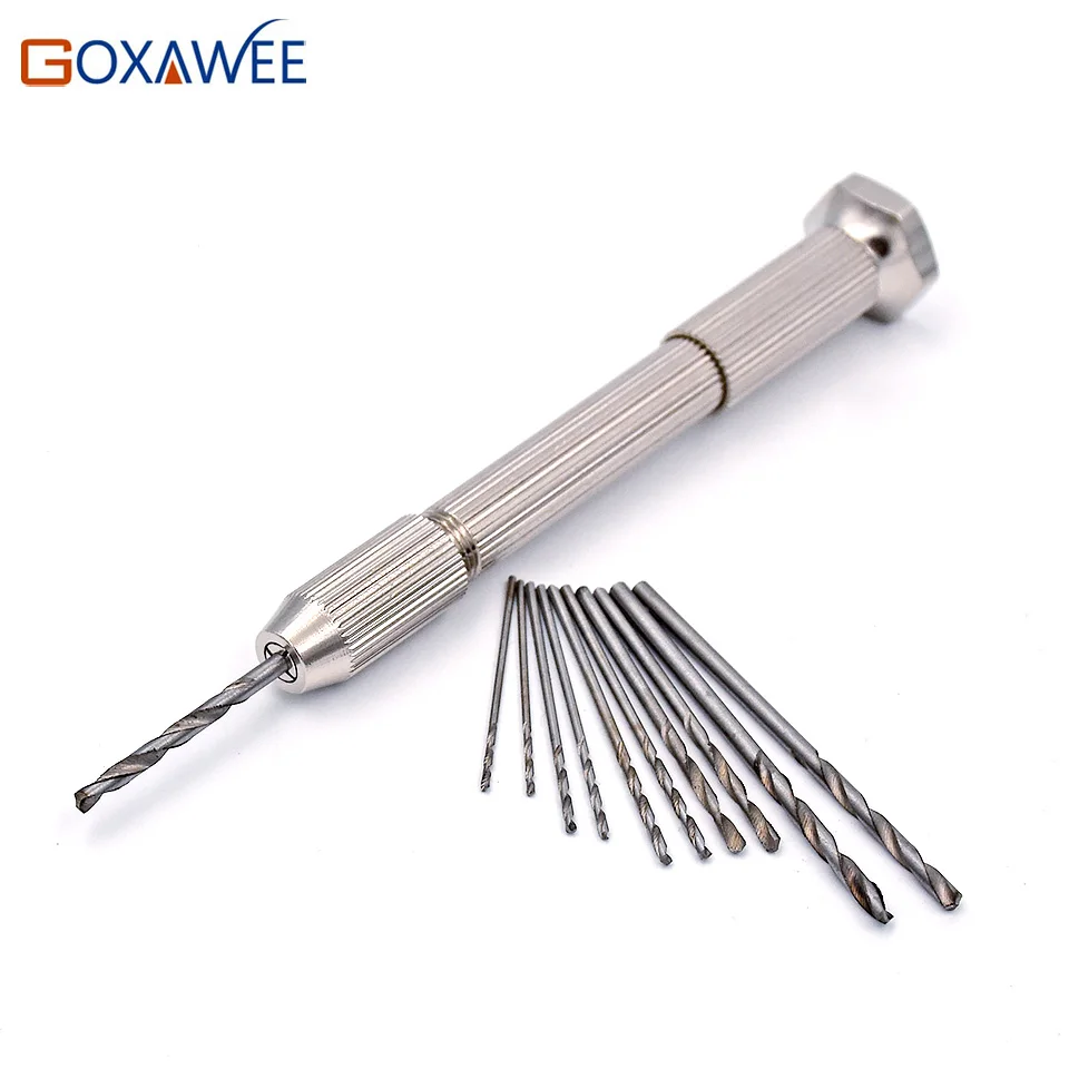 High Quality Mini Micro Aluminum Hand Drill With Keyless Chuck +10pc Twist Drill Bit Woodworking Dr Top Deals